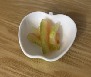 娘がこの漬物が大好きで、スイカを美味しく食べた後にさらに皮を漬物にするととても喜びます。
